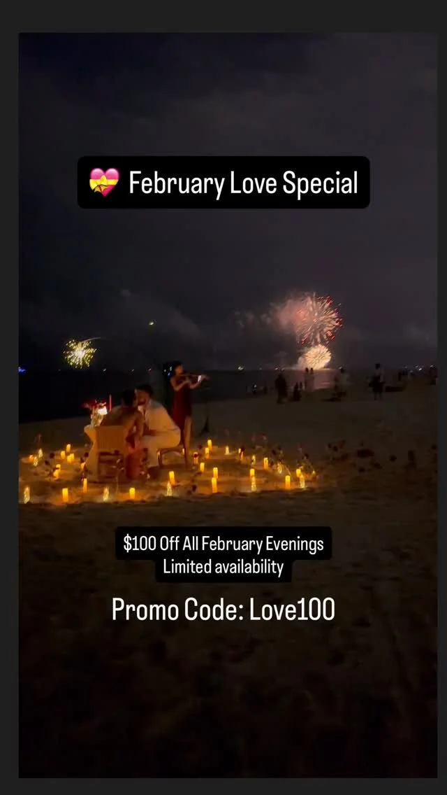 Whether it’s a candlelit proposal on the beach, a private dinner under the stars, or a romantic evening aboard an elegant yacht, every detail is thoughtfully crafted. From luxury picnics to immersive signature experiences, your evening can be elevated with exquisite private service and the magic of a live performance - just for you.